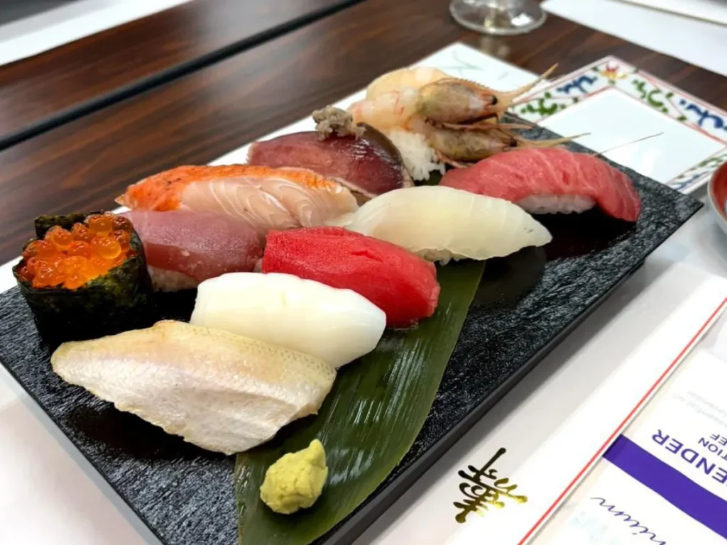 静かな空間の中で、職人が一貫ずつ仕上げる寿司と料理。
